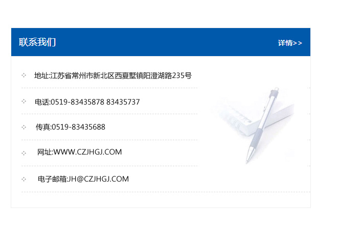 傳真:0519-83435688    郵編:213135    網址:WWW.czjhgj_com.wm-lh.com    電子郵箱:JH@czjhgj_com.wm-lh.com